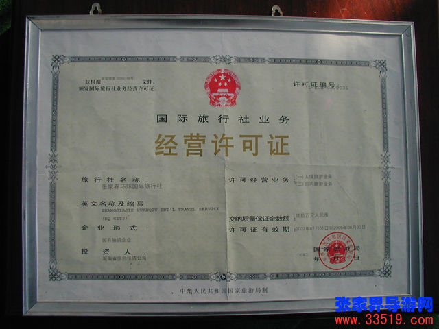 湖南省財政(xi角n)廳信托投資總公司在張家(ch見n)界設立的旅行社:一流國際社踇團,品質有保
