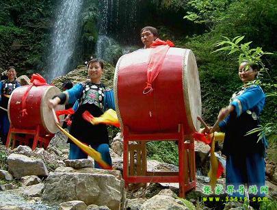 苗族花鼓源于唐代,至今已有一千多年的歷史。為什么叫花鼓?因無文字可考,據(jù)老年的花鼓師傅說,幼年他們跟上一輩人學鼓時,鼓上都貼有各種鮮艷的花瓣,擊鼓,不準擊落花瓣,這便要上乘的功夫。也許這就是花鼓的由來。