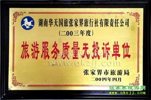 湖南省旅游市場(chǎng)開發(fā)工作先進(jìn)單位 2004.2 湖南省旅游市場(chǎng)開發(fā)工作先進(jìn)單位 |