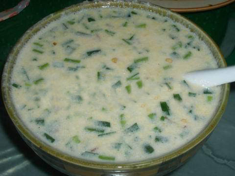 名稱: 合渣 介紹: 合渣是土家極喜歡的菜肴。以黃豆粉摻青菜葉溫火煮,味美易咽,營(yíng)養(yǎng)豐富。