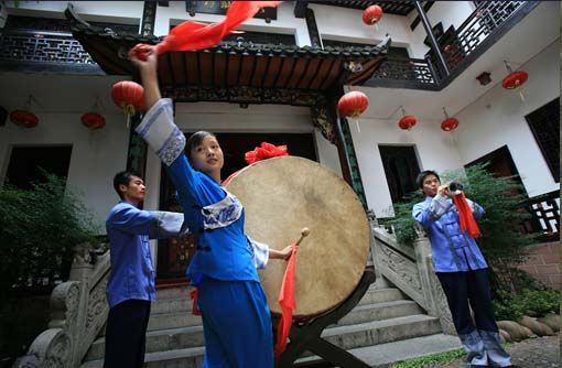 秀華山館位于張家界市中心,是中國(guó)第一家土家人博物館,在這里,悠久的土家文化藝術(shù)和濃郁的民俗風(fēng)情表演藝術(shù)達(dá)到了高度和諧統(tǒng)一,被譽(yù)為“土家族的魂靈”、“湘西文化 的縮影”。秀化山館的主體建筑采用土家民居中的井院式結(jié)構(gòu),高低錯(cuò)落、井院圍合,所有門(mén)窗、檐角、基石都從湘西各地收藏而來(lái),古色古香、美倫美奐。