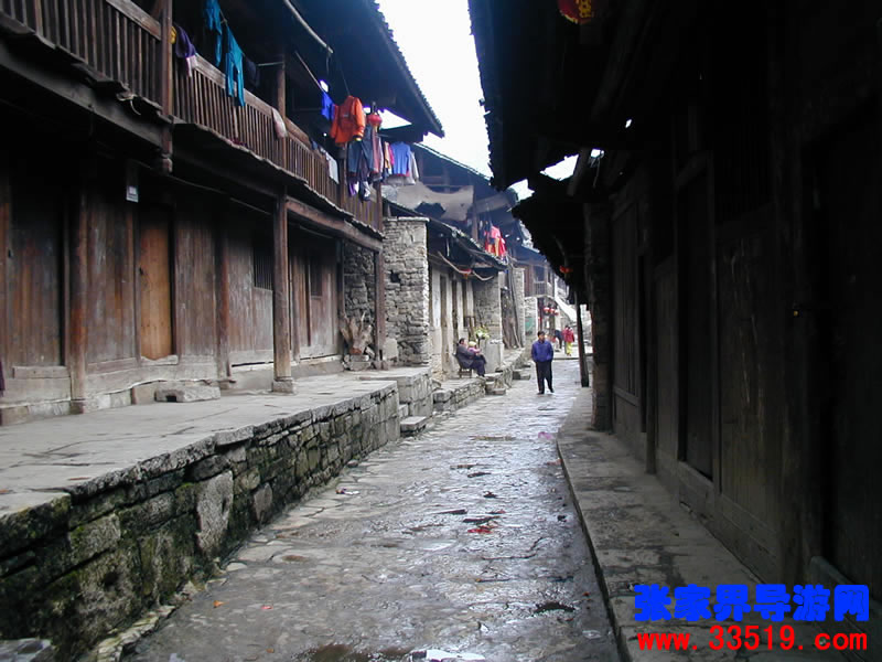 古寨建于唐宋,盛于明清。曾是澧水上游“千帆林立的老碼頭、商賈云集的古集市、梢公蕩魂的逍遙窟、明清社會(huì)的萬花筒”。古老的風(fēng)火墻、低矮的吊腳樓向游人展示著土家人的聰明才智,一條條青石板,一聲聲咚咚喹,在訴說著古寨子曾經(jīng)的輝煌。在澧水沿岸,至今發(fā)現(xiàn)人類活動(dòng)的蹤跡已推到了三億多年前的舊石器時(shí)代,而桑植設(shè)縣也有2200多年的歷史。據(jù)專家考證,這座古鎮(zhèn)始建于唐宋,興盛于明清,已有近2000年的歷史。因?yàn)樗铣锌h府,下臨險(xiǎn)峻峽谷,又居山臨水,地勢(shì)險(xiǎn)要,歷來被稱為桑植的咽喉之地。
