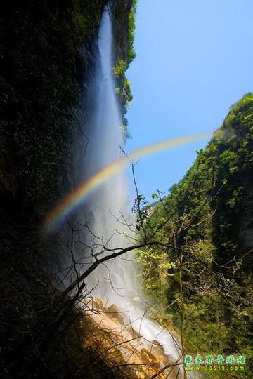 【天河觀景臺】我們現在所處的這個凌空觀景臺就是天河觀景臺。站在這里,不僅可以左右兩邊觀看整個大峽谷的風景,還可以欣賞壯觀的天河瀑布。在太陽的照射下,飛流直下的天河瀑布上面,總會形成一條七色彩虹,耀眼奪目。大家在這里拍照留影的時候,千萬要注意自己的人身安全,不要擁擠和爭搶拍照的位置。