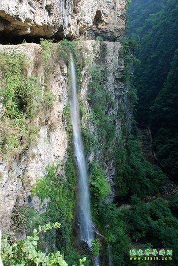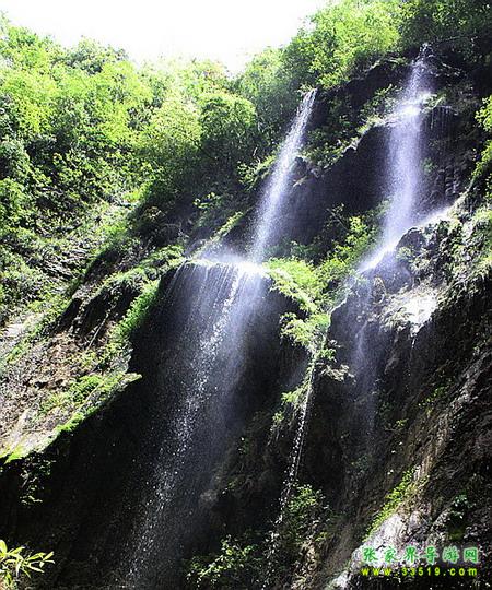 【珍珠墻】過了神泉橋,請大家留步,做一個短暫的停留。請大家看,我們的面前,石壁之上,生長著很多植物,很多草類,山上的泉水沿著石壁,以均勻的流量漫流下來,在這些草葉上、枝枝蔓蔓上形成了一個個潔白晶瑩的水珠,大家看像不像珍珠?游客朋友們都將這堵石壁叫做珍珠墻,掛滿珍珠的石墻啊。