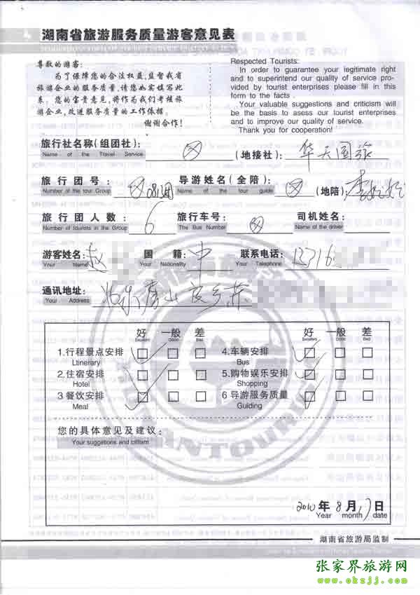 2010年8月17日北京趙先生一行6位旅游質量反饋