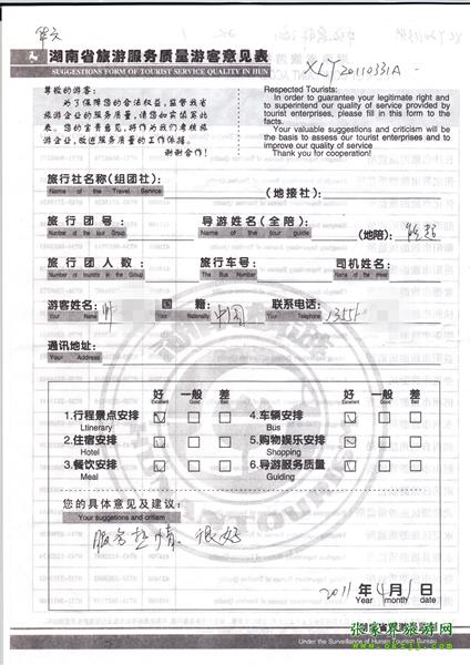 2011年4月7日帥先生旅游質量反饋:服務熱情,很好