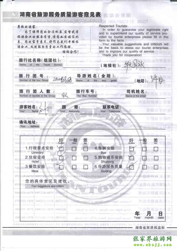 - 2011年10月26日張小姐一行18人旅游質(zhì)量反饋 [10482]