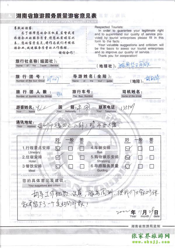 - 游客夏先生為表?yè)P(yáng)導(dǎo)游李姣姣寫來表?yè)P(yáng)信致我張家界... [14811]