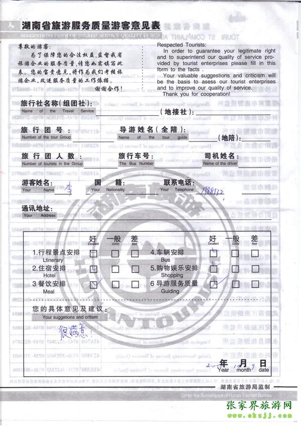 - 游客夏先生為表揚(yáng)導(dǎo)游李姣姣寫來表揚(yáng)信致我張家界... [14811]
