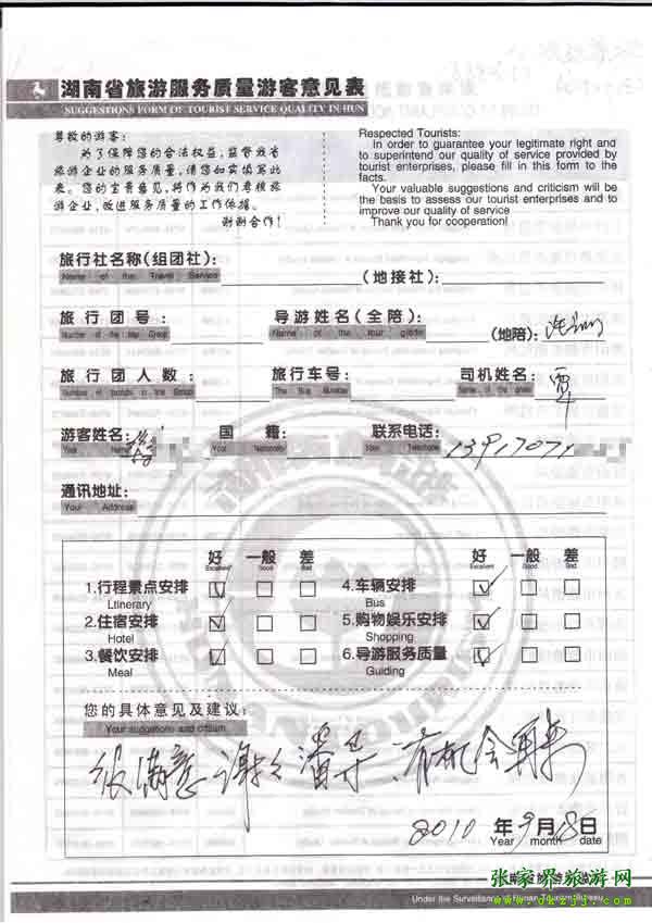 - 游客夏先生為表揚導(dǎo)游李姣姣寫來表揚信致我張家界... [14811]