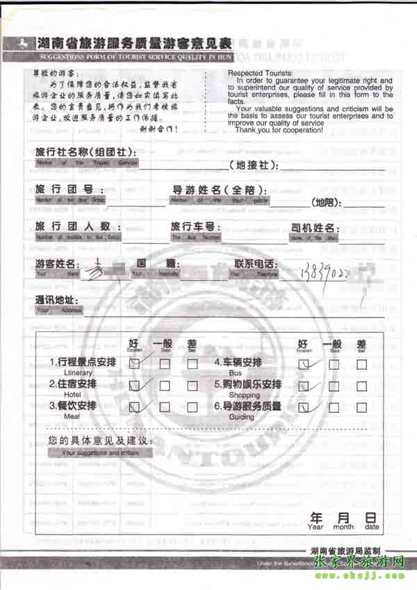 - 2011年10月26日張小姐一行18人旅游質(zhì)量反饋 [10482]