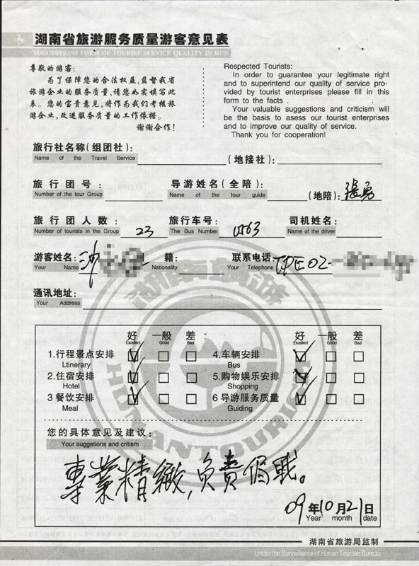 - 游客夏先生為表揚導(dǎo)游李姣姣寫來表揚信致我張家界... [14811]