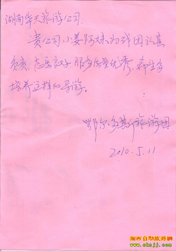 - 游客夏先生為表?yè)P(yáng)導(dǎo)游李姣姣寫來(lái)表?yè)P(yáng)信致我張家界... [14811]