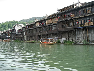 2.沱江人家客棧,和黃永玉畫室一墻之隔,位于虹橋下游奪翠樓邊,因為突出一塊陽臺正對虹橋,下臨回龍?zhí)?,是觀賞虹橋和奪翠樓的絕佳位置,¥20/人(旺季漲到30-40元/人,獨立衛(wèi)生間24小時熱水(煤氣熱水器)。主人包忠文,回龍閣13號,電話:0743-3224558.