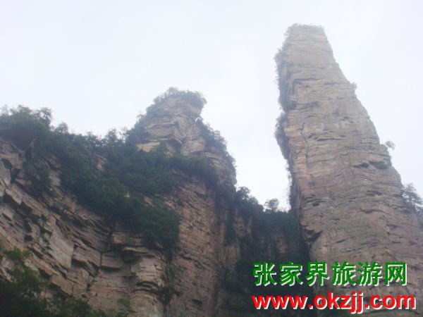 什么?有人說(shuō)夫妻巖是兩個(gè)石頭啦。那旁邊的那個(gè)石頭是第三者?我暈,佩服你們的想象力啊。夫妻巖位于黃石寨對(duì)面山頭,張家界山莊后,在田家臺(tái)的對(duì)面,有兩個(gè)自然生成的山峰。這山也真奇,一個(gè)象男,一個(gè)象女,頭挨著頭,身靠著身,有眼睛,有鼻子,有頭發(fā),有嘴唇,就連眉毛與牙齒,也看得清清楚楚,明明白白。他倆站在高山,立在神地,相親相愛(ài),永不分離。相傳,這是花仙山荷花與養(yǎng)蜂人田花郎歷盡千辛萬(wàn)苦,幾度起死回生結(jié)合而成的,如遇自己的紅顏知己,可以去此處看看,許下心愿可保夫妻和睦,家庭幸福。
